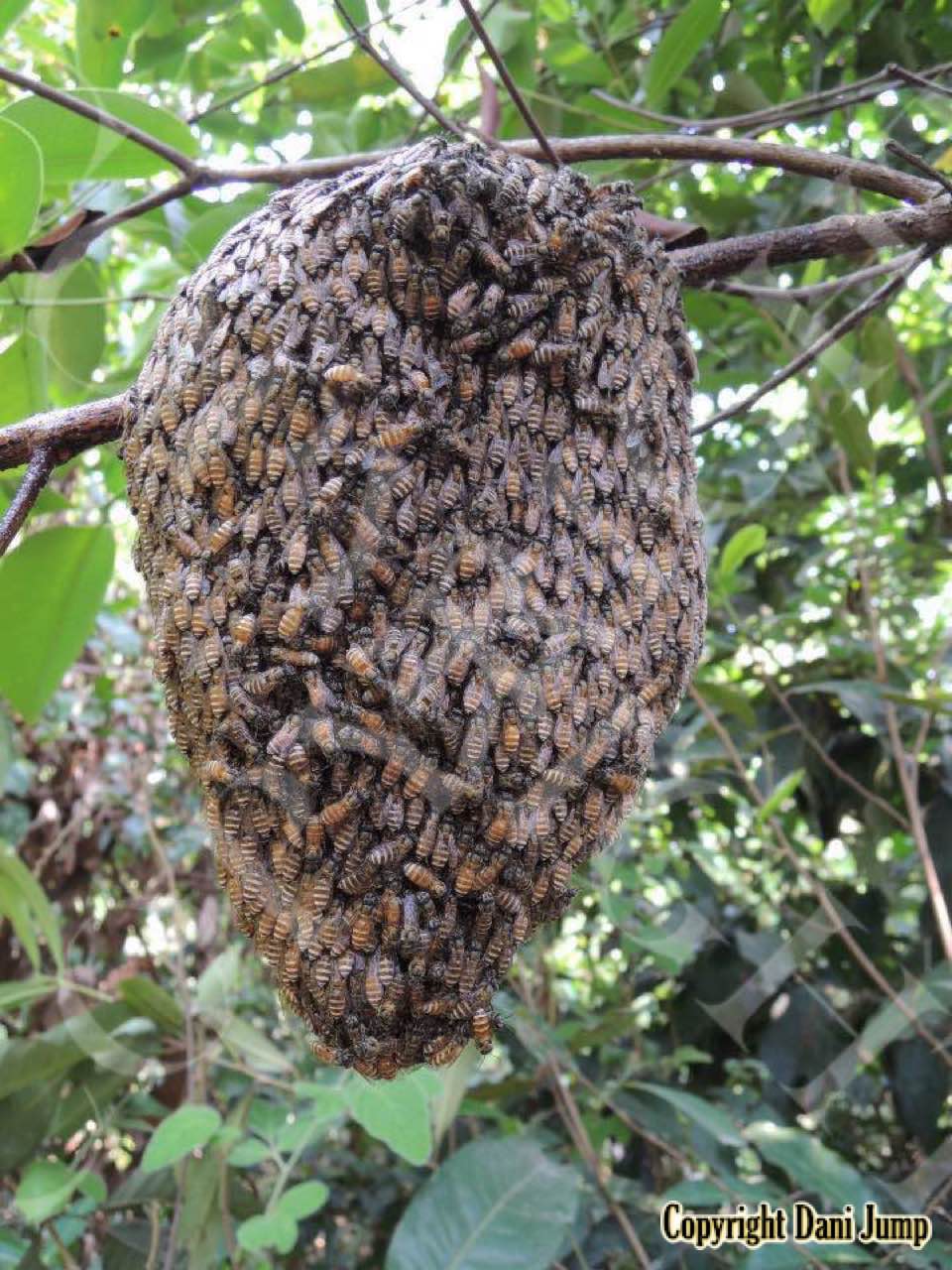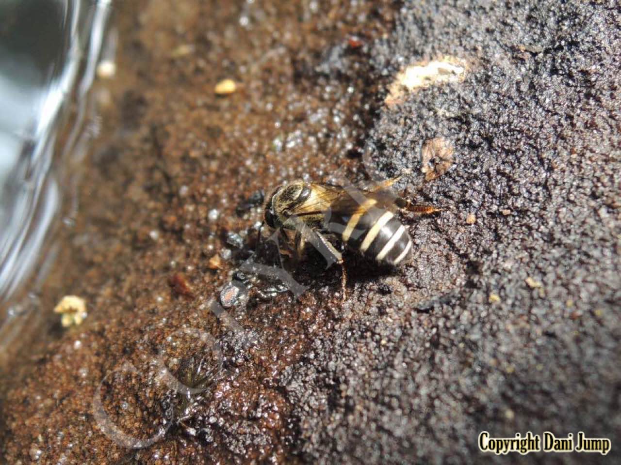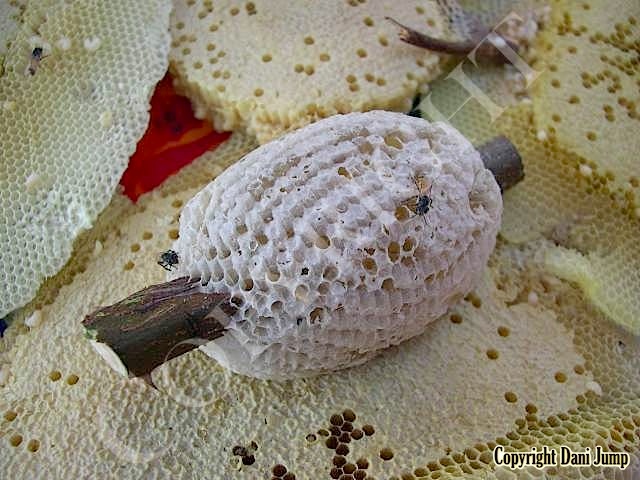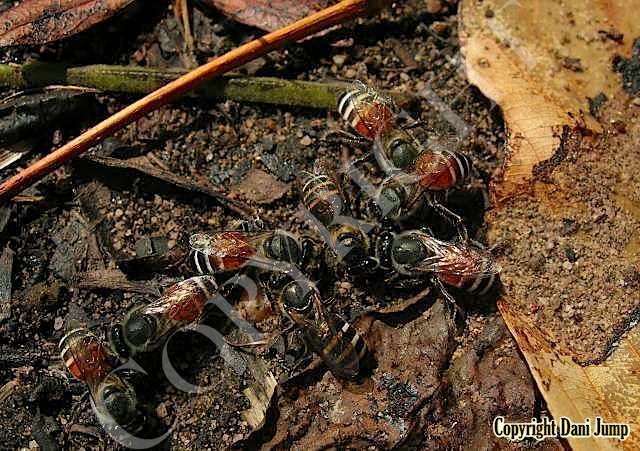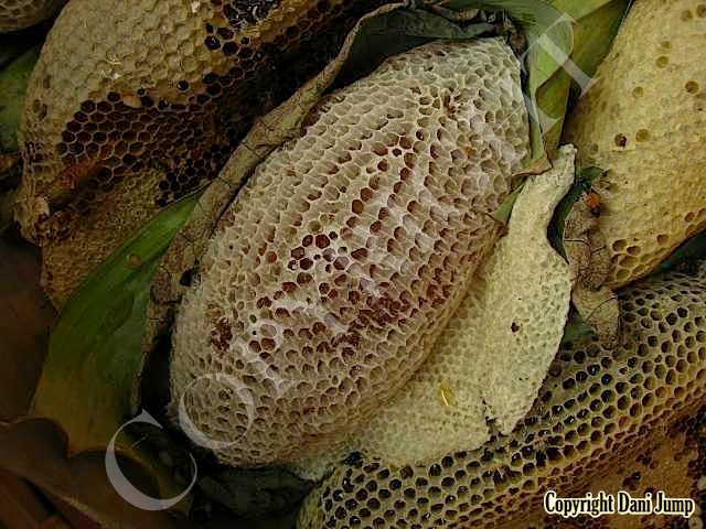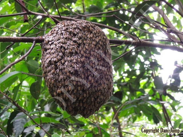 This Dwarf Honeybee species, somewhat smaller than its common ‘cousin’ Apis florea--both in size and in colony--whose name in Khmer translates as "dog poo", of all things, favours forest habitat. It is the only indigenous honeybee here in NW Cambodia that is not cosmopolitan; thus it is seldom encountered by the general population... and even less so by Bees Unlimited.