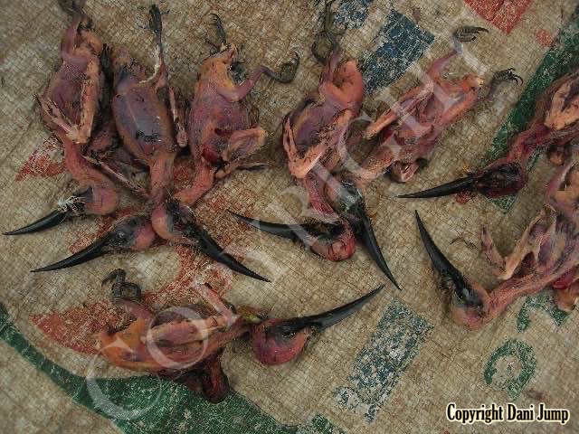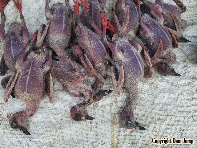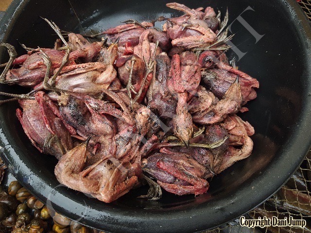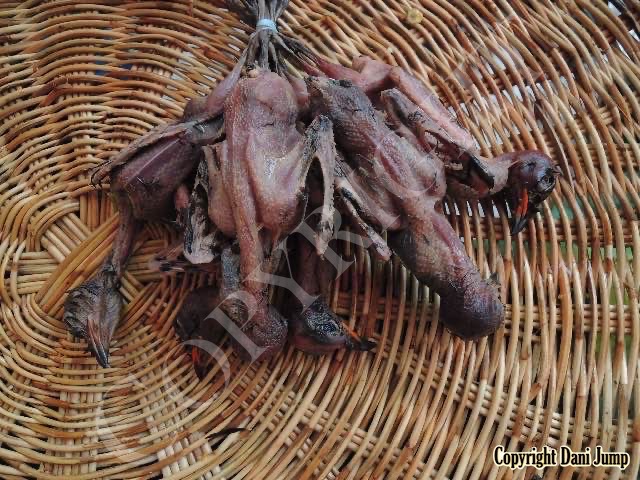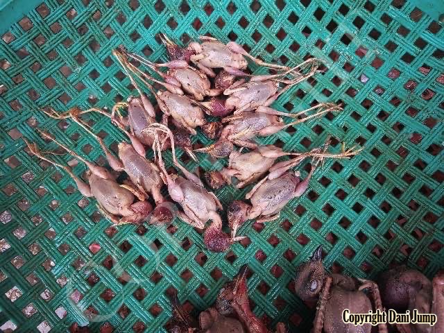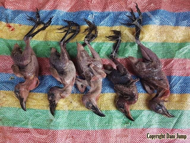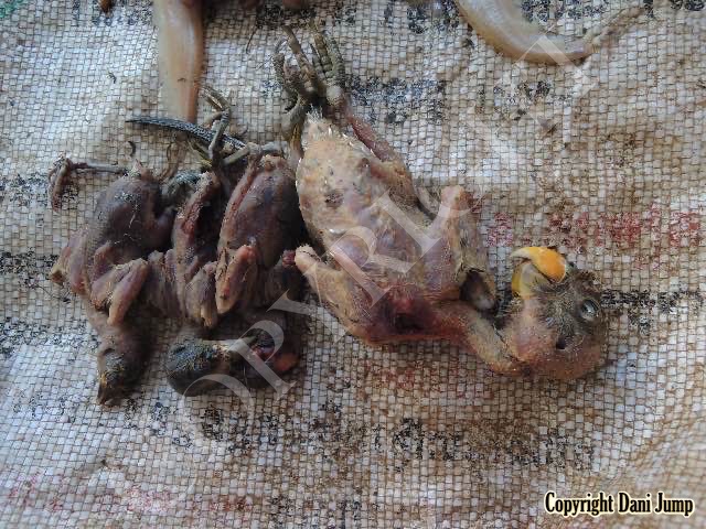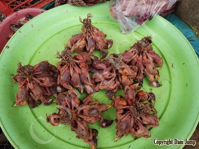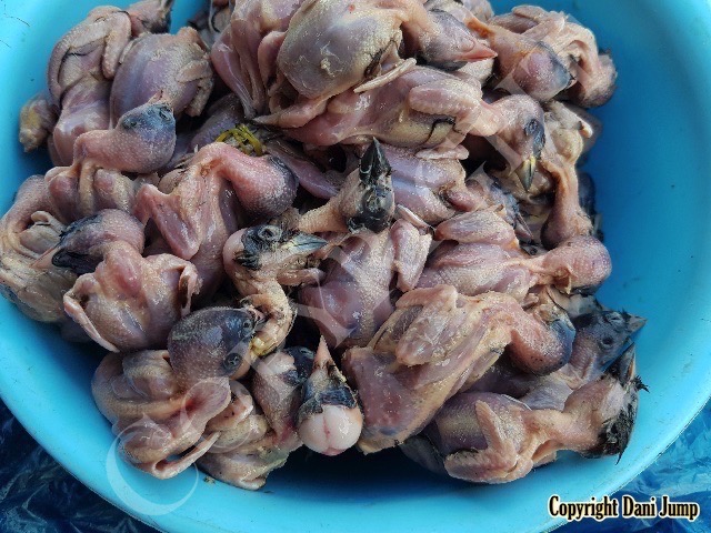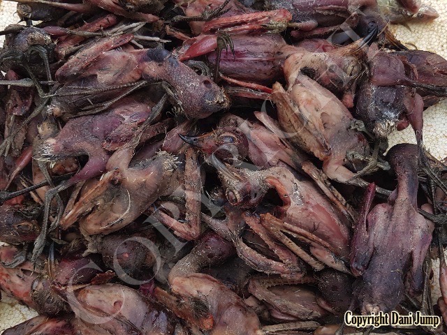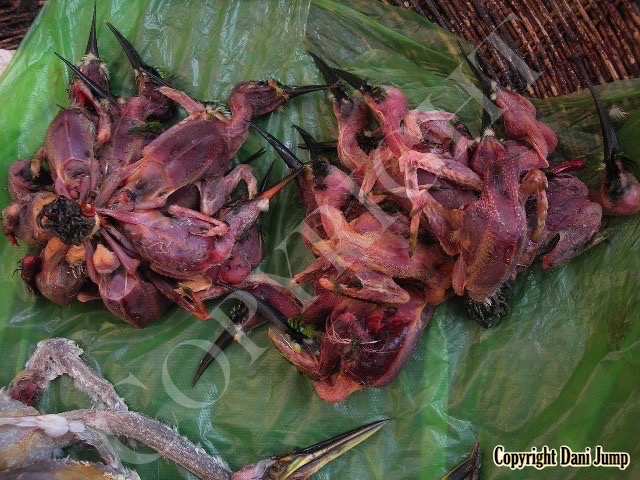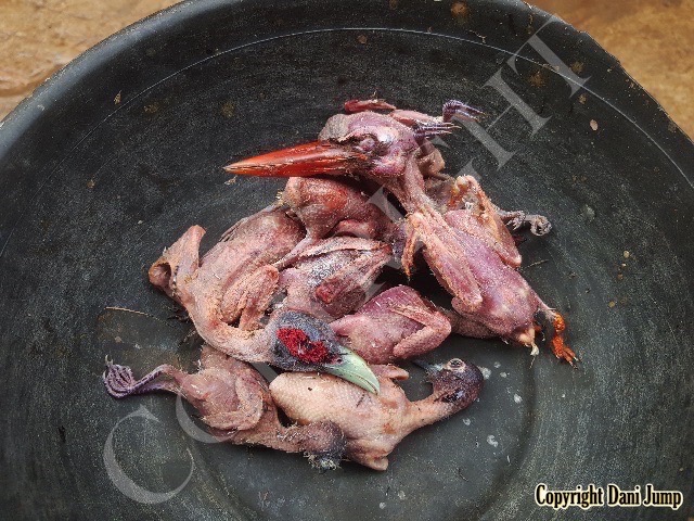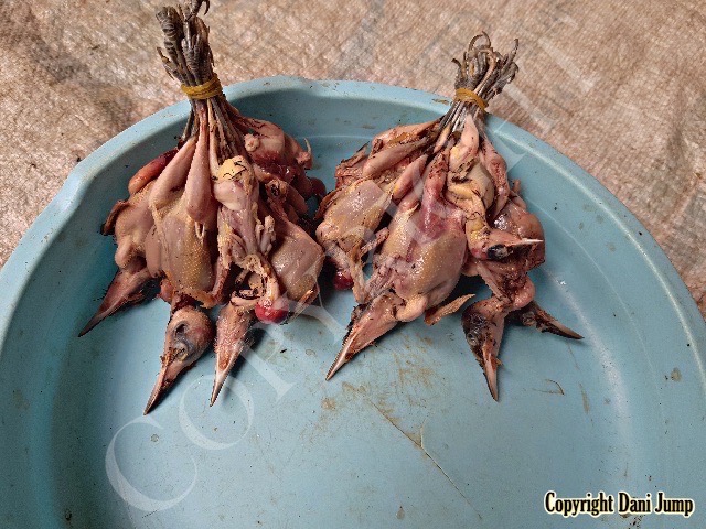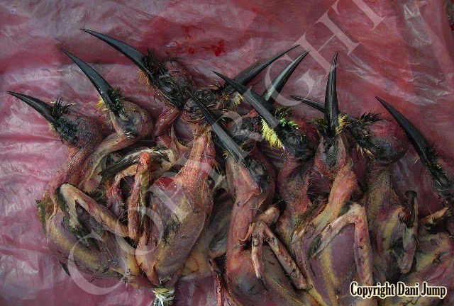 In Cambodia, most everything that moves is edible--even Indian rollers and beautiful bee-eaters. Other birds... owls, larks, finches, sparrows, doves, pigeons, parrots, mynas, starlings, kingfishers, cuckoos, crow pheasants, and pratincoles also find themselves on the menu.
