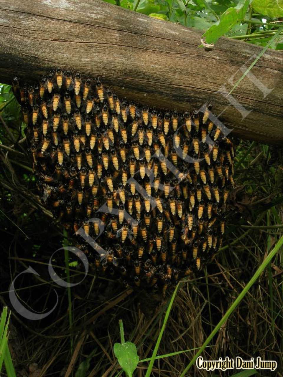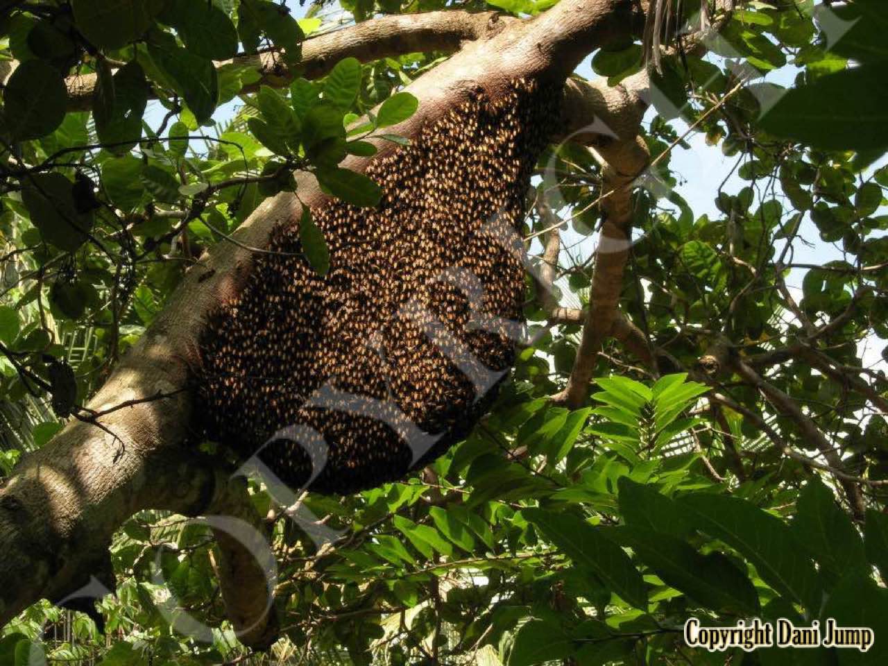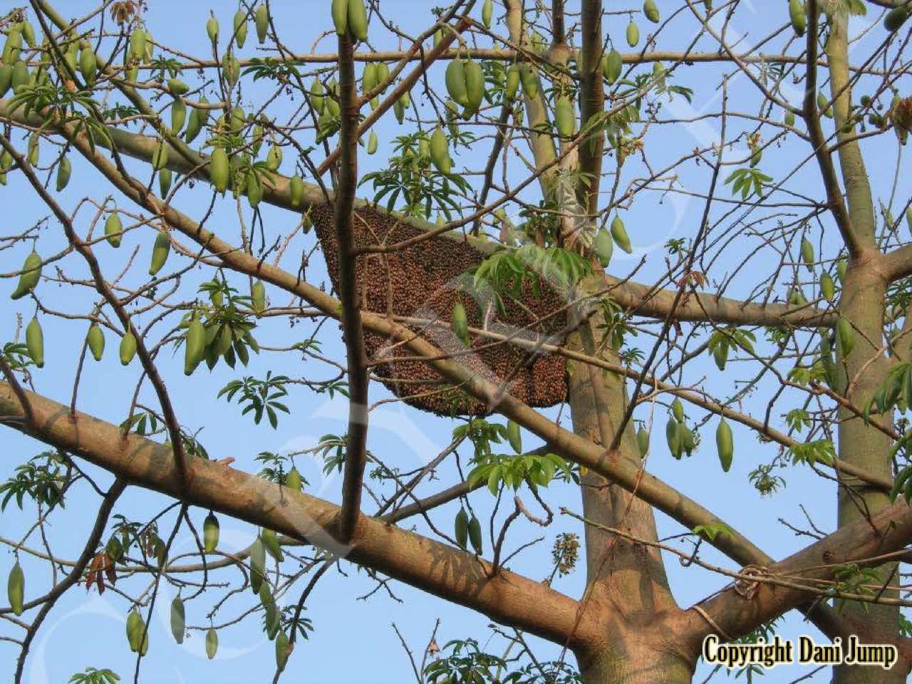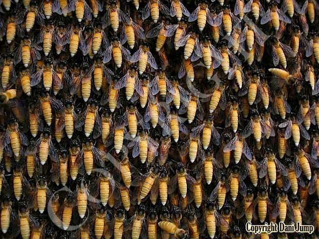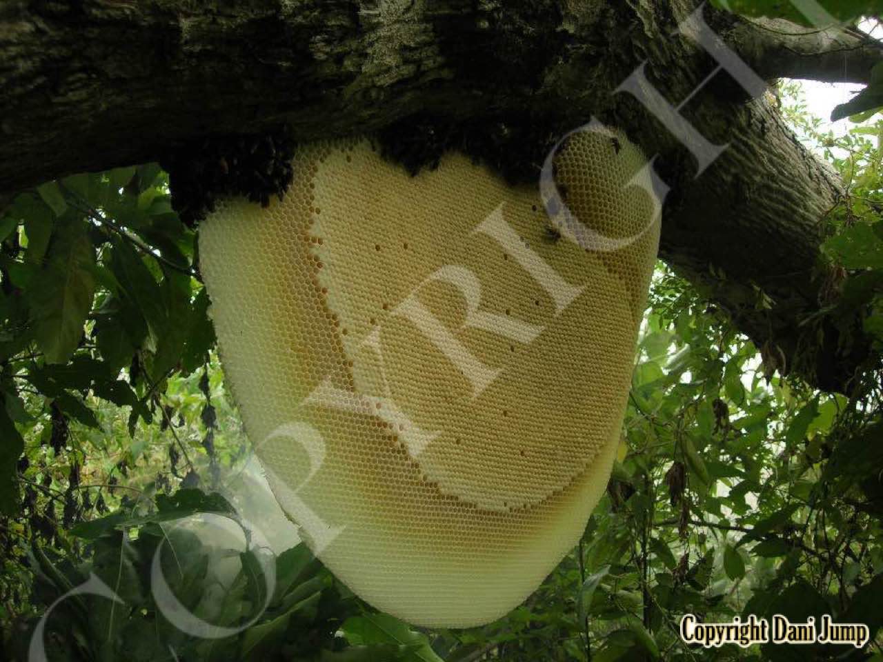 These giants of the honeybee world, exploited traditionally in Cambodia for their honey and wax, as well as their larvae, produce copious amounts of honey, and are the bees of choice for local honey-hunters. Migratory in nature, nesting high up under the tall tree canopy, very low to the ground, or anywhere in between, they are as equally at home in a small town or large city as they are in the countryside or forest. Their oft-enormous single-comb colonies (that need to be seen to be believed!) and aggressively defensive demeanor make them unsuitable candidates for domestication. Rafter beekeeping, however, allows honey-hunters easy access to feral colonies, which, when smoked, are readily exploited with minimum fuss.