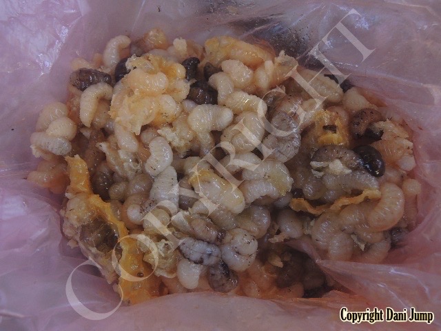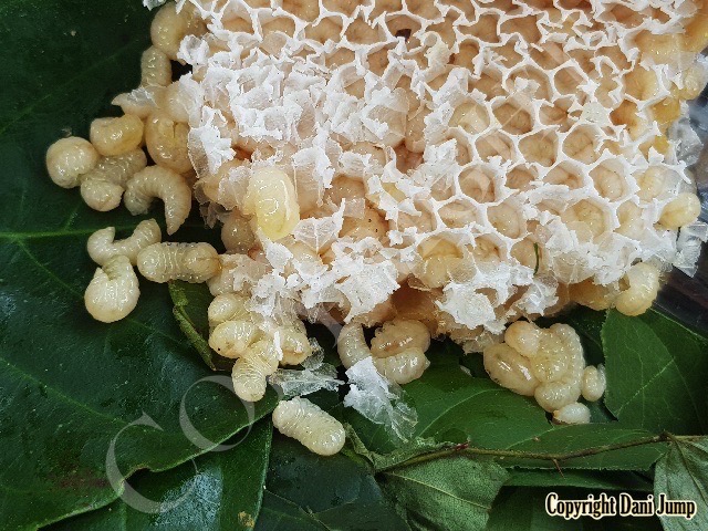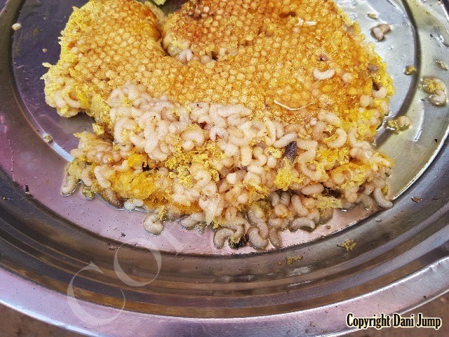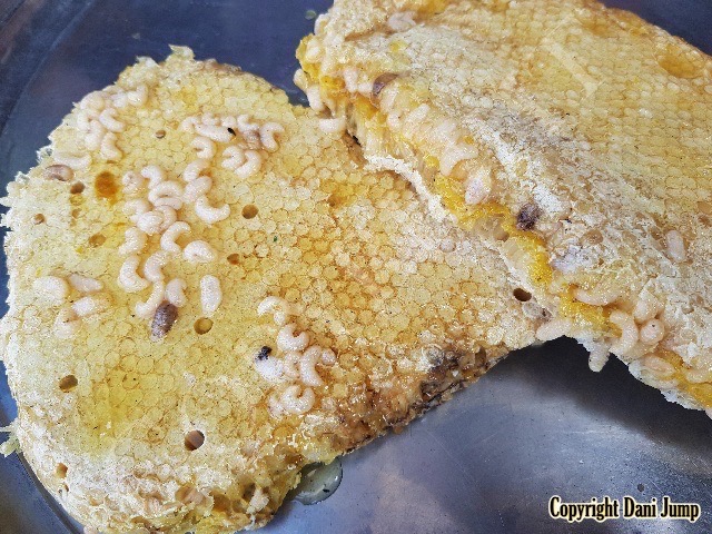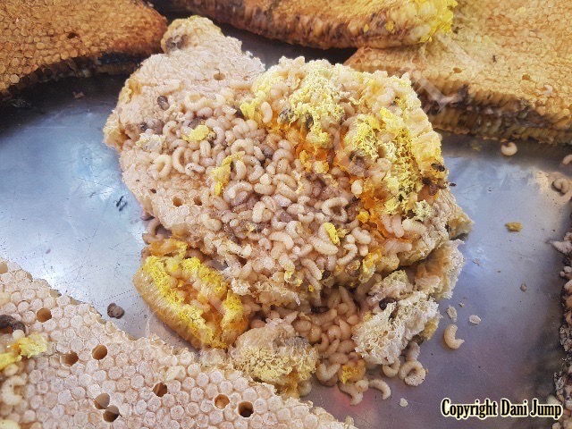 Bee brood is included in the mix here, and is often consumed raw or grilled.
