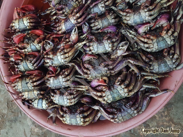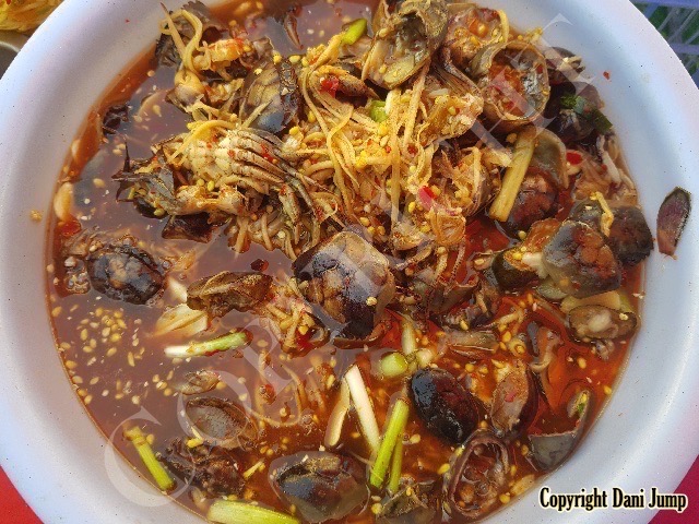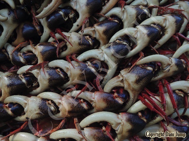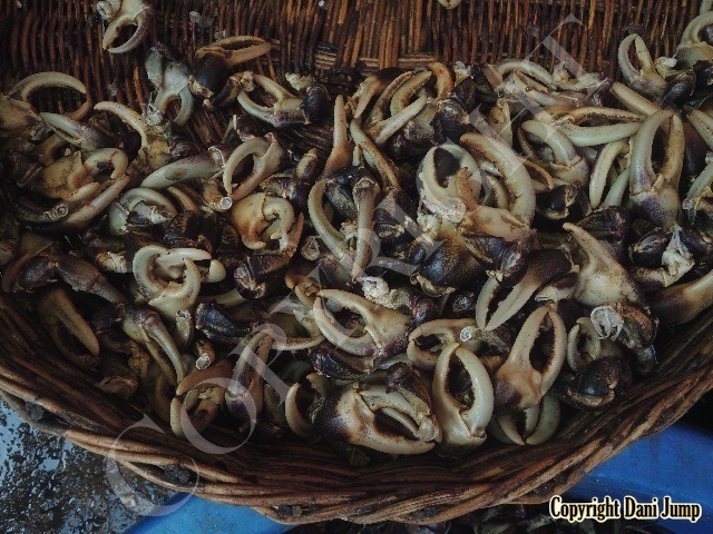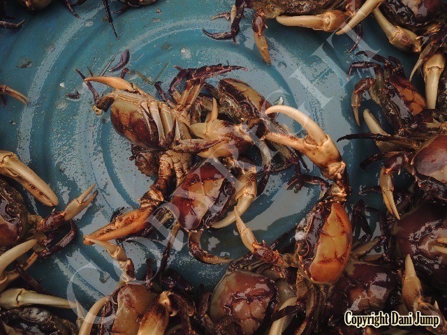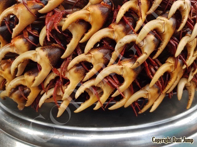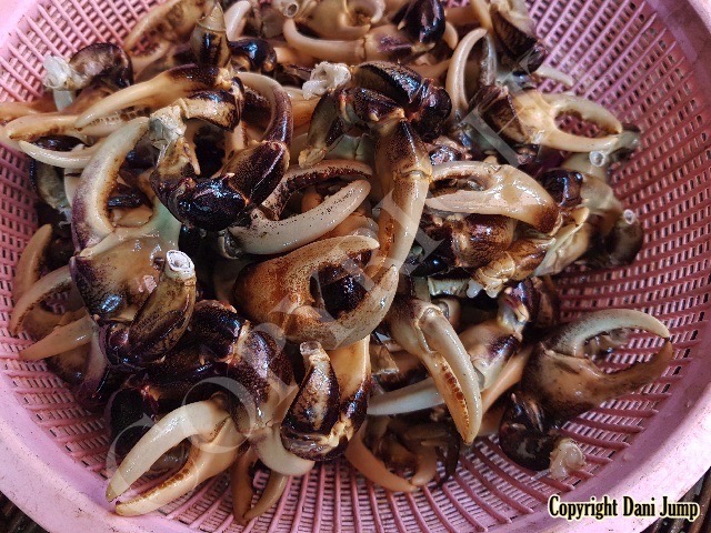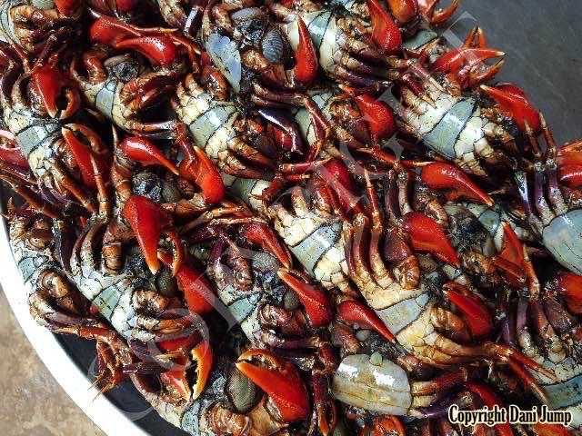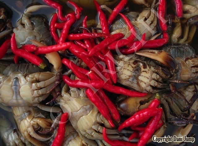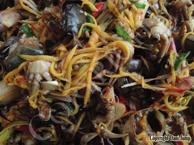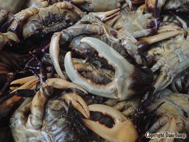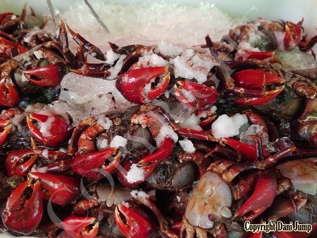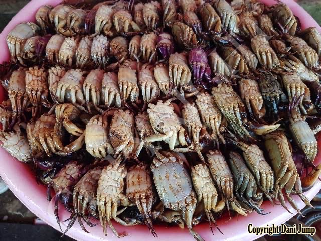 Abundant during the rainy season, both rice field and mangrove crabs flood local markets, and are sold live, dead, spiced, pickled, as a paste, or grilled. There's not much meat in them, but the locals love 'em, nevertheless--particularly when downed with loads of chilli and garlic!