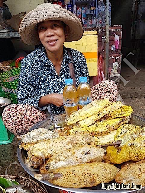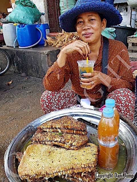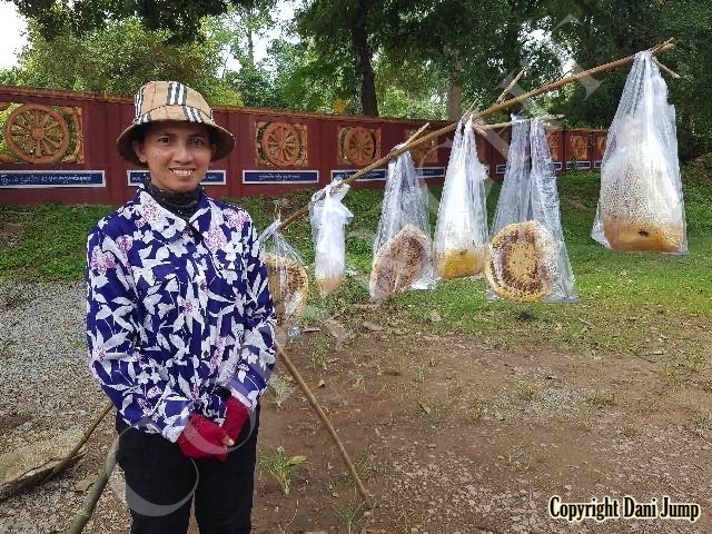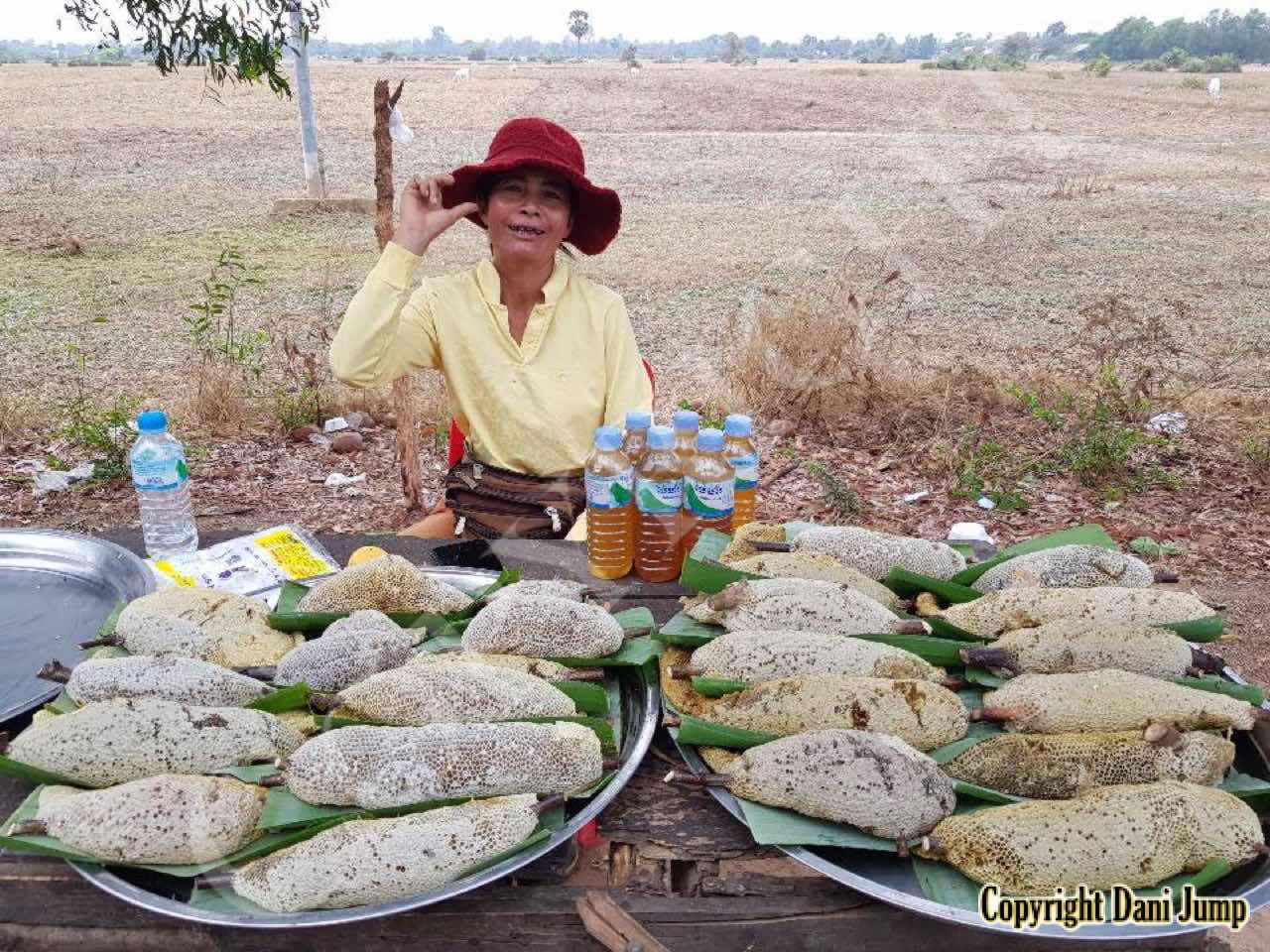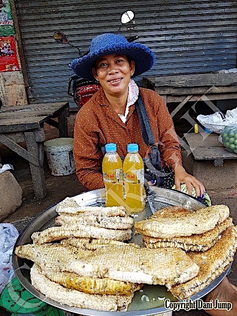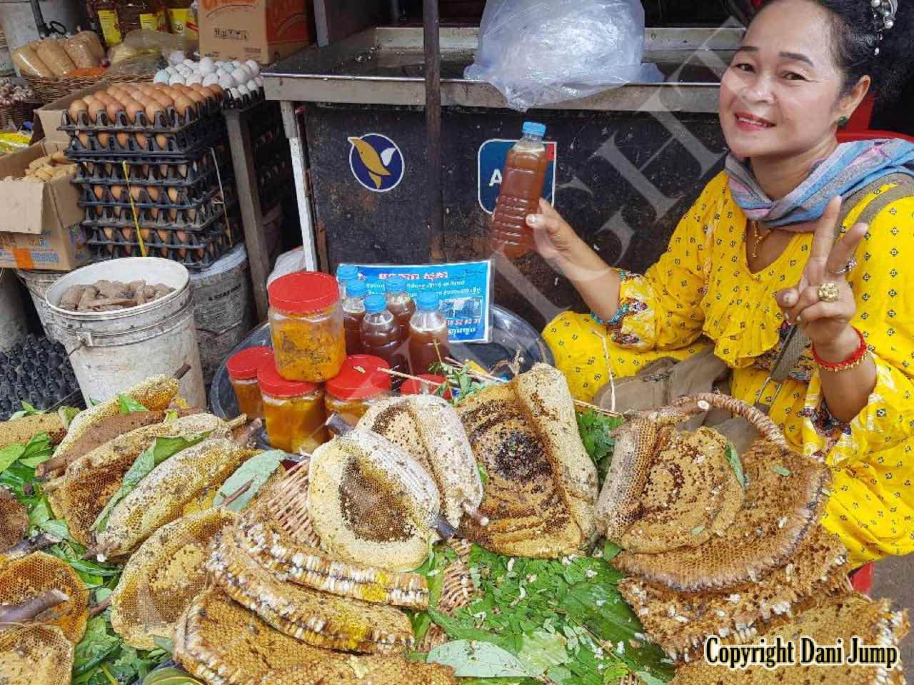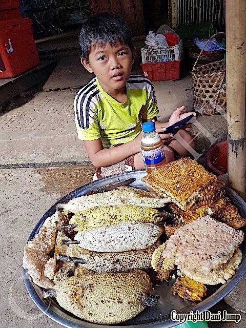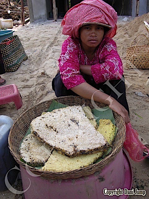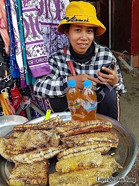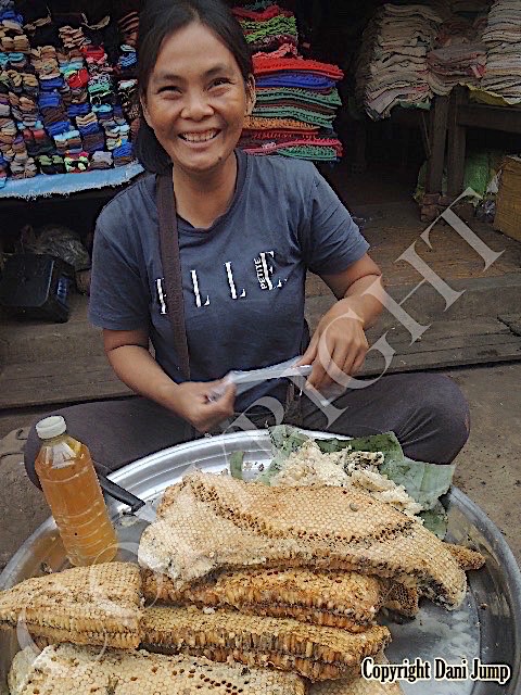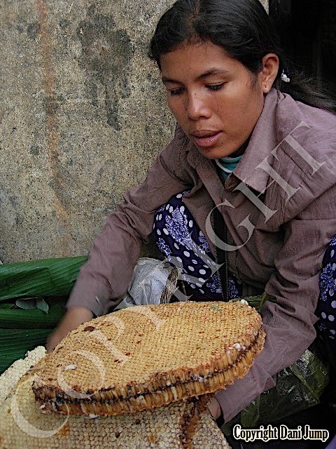 Although there's so much less for sale these days than in days gone by, vendors do continue to peddle honey and bee brood roadside, and in local markets. The brood is real, but the honey--if it comes in a bottle--should always be treated as suspect, particularly if it's sold at a market. On the other hand, if it's sold roadside by honey-hunter families, and in a rural setting, it may be the real deal.