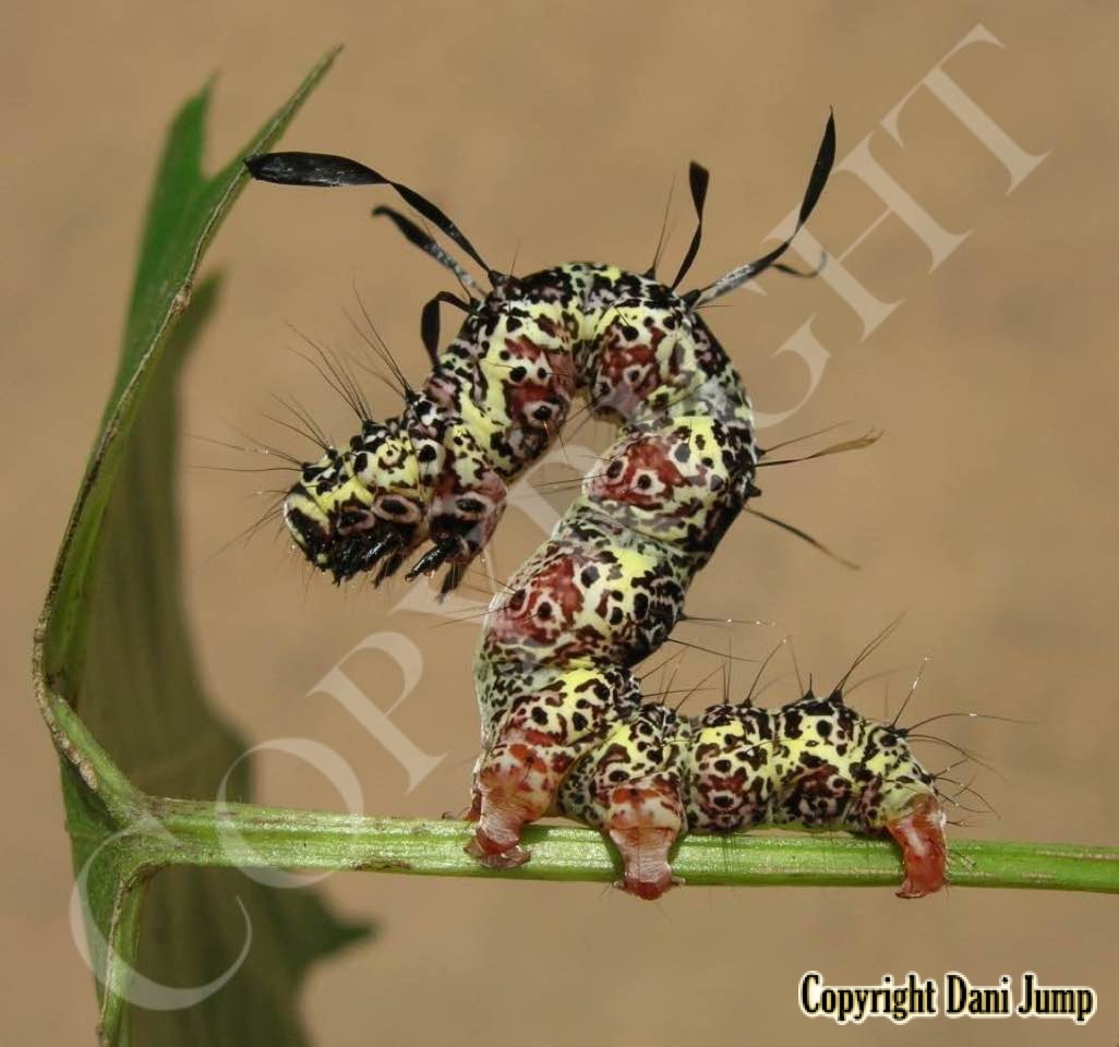 So much more abundant than their butterfly counterparts, moth larvae come in a wide variety of colours, shapes, and sizes. Various modes of camouflage and mimicry help protect them from being readily devoured by birds and beasts.