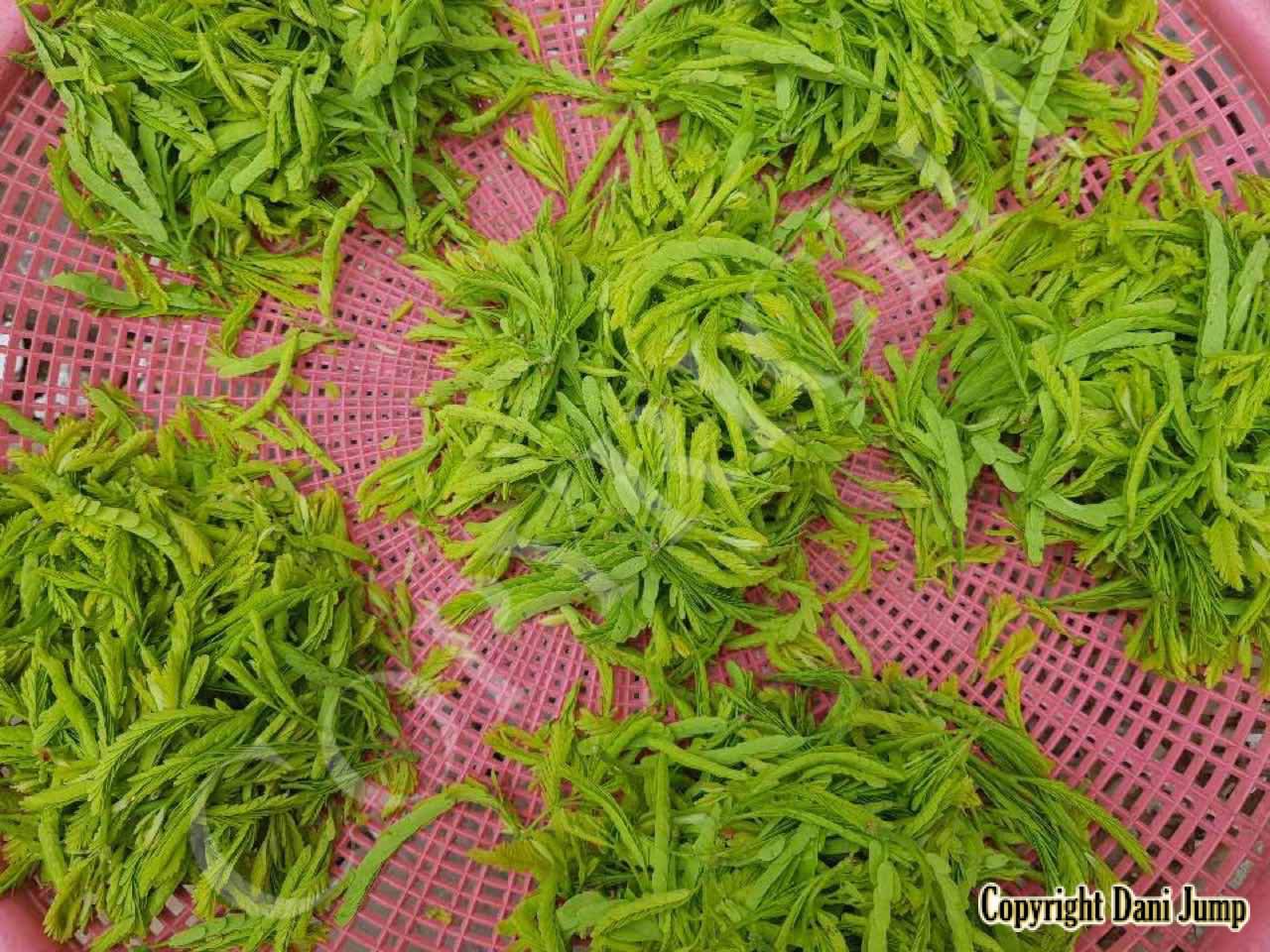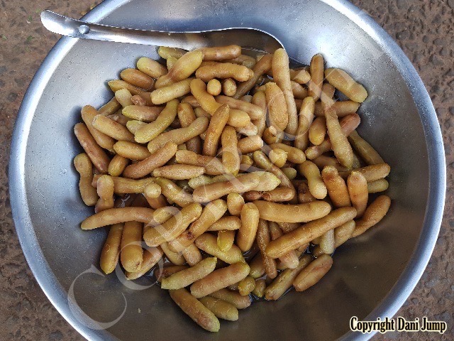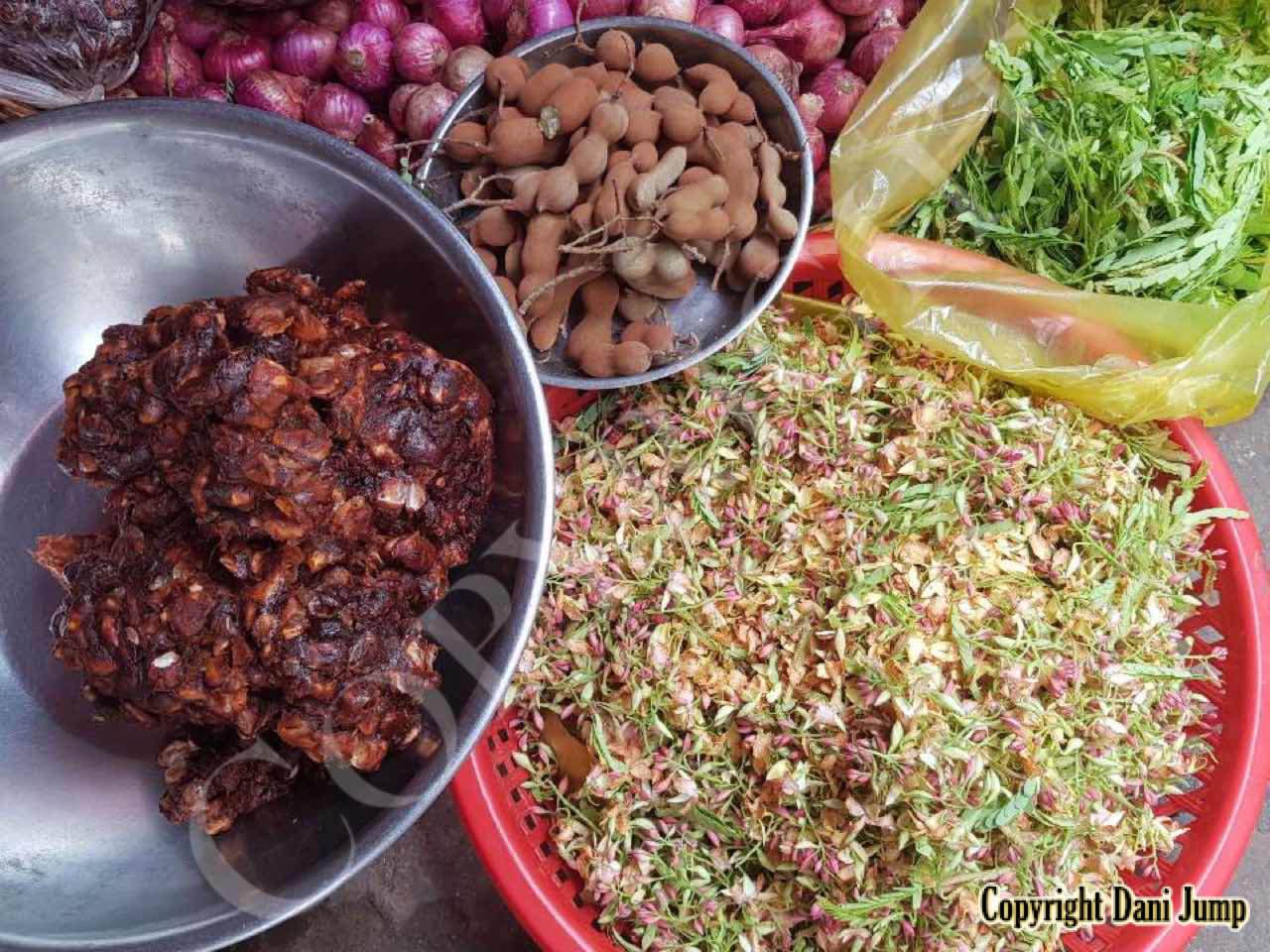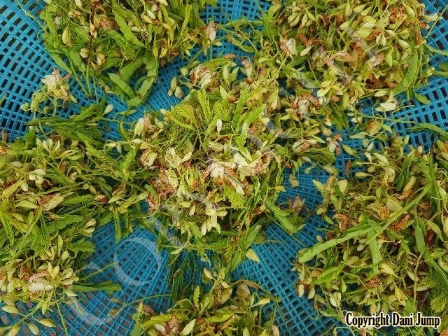 Tamarind (Tamarindus indica)... the mouth often waters at the sound! The fruit is common at markets throughout Cambodia, and can be found in many forms: sweet, sour, pickled, green, ripe, sugared and spiced, and as a paste. The flowers and young leaves are eaten, too.