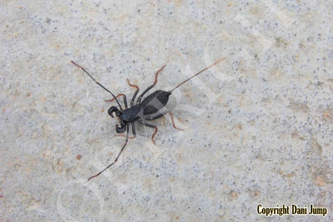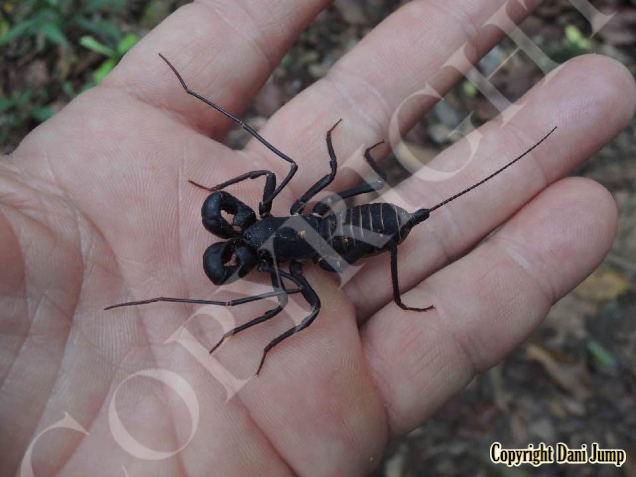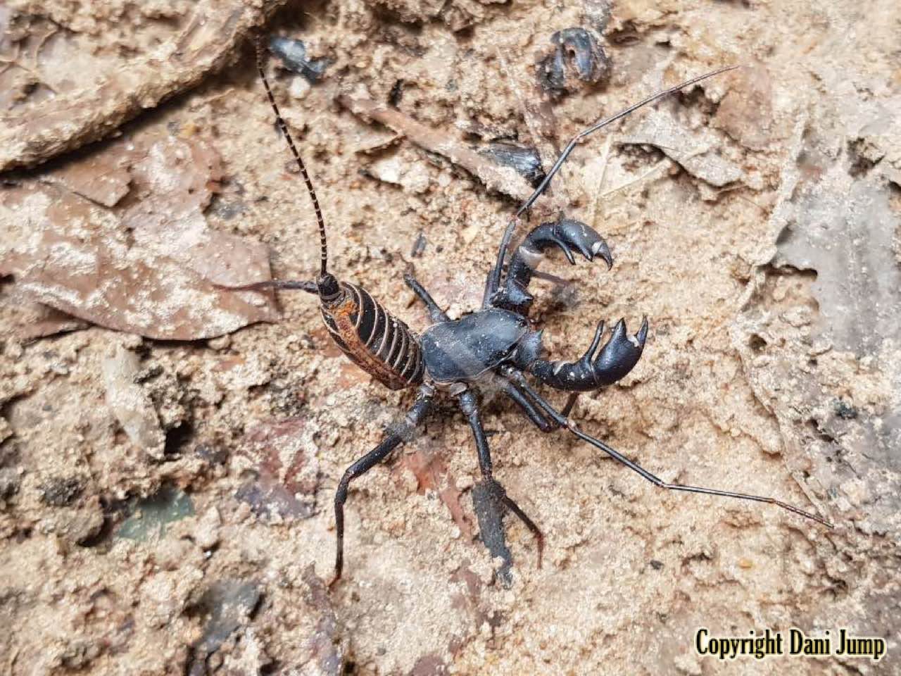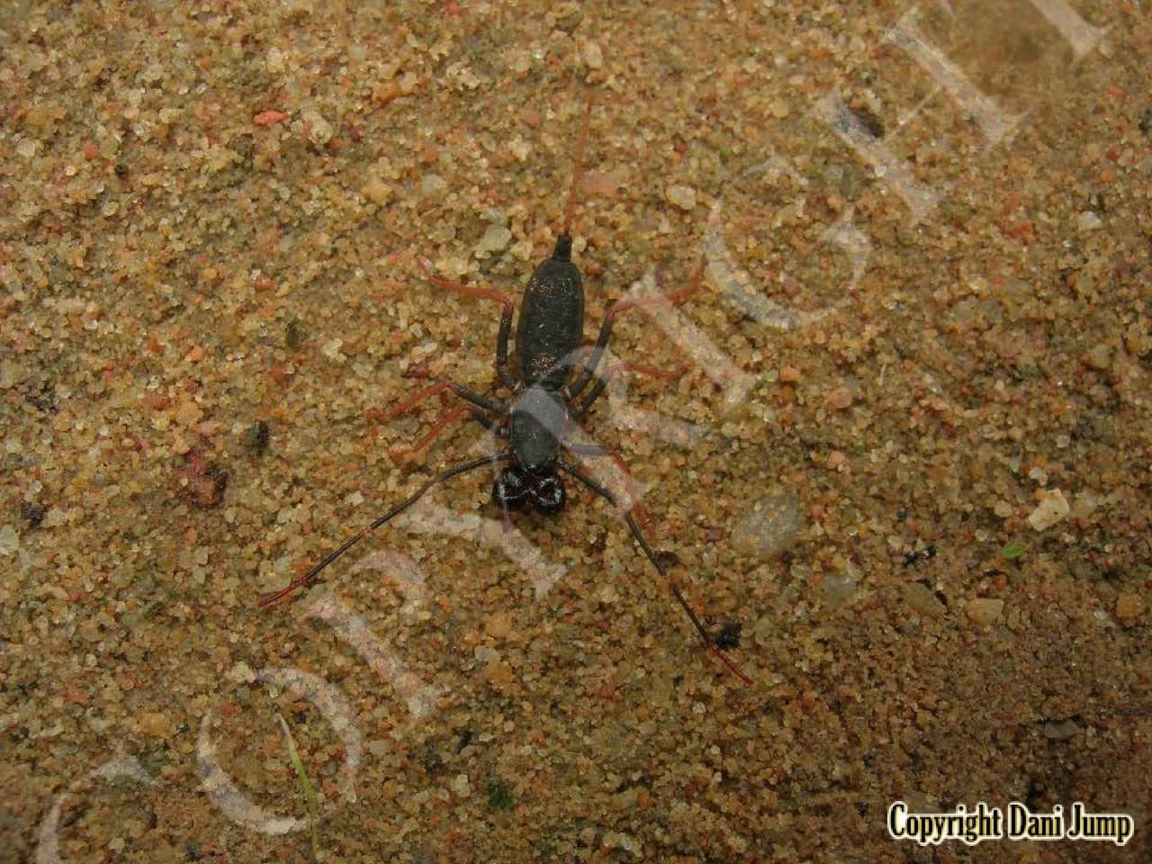 Unlike their “cousins”, which sport stingers and are often found in urban settings, these “false” scorpions, occasionally spotted in wooded areas--particularly during the rainy season--are no more a menace than the acetic acid they tend to share with over-zealous handlers.