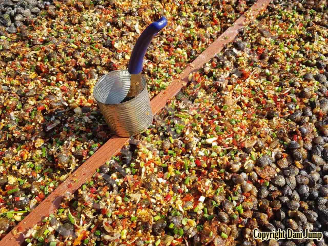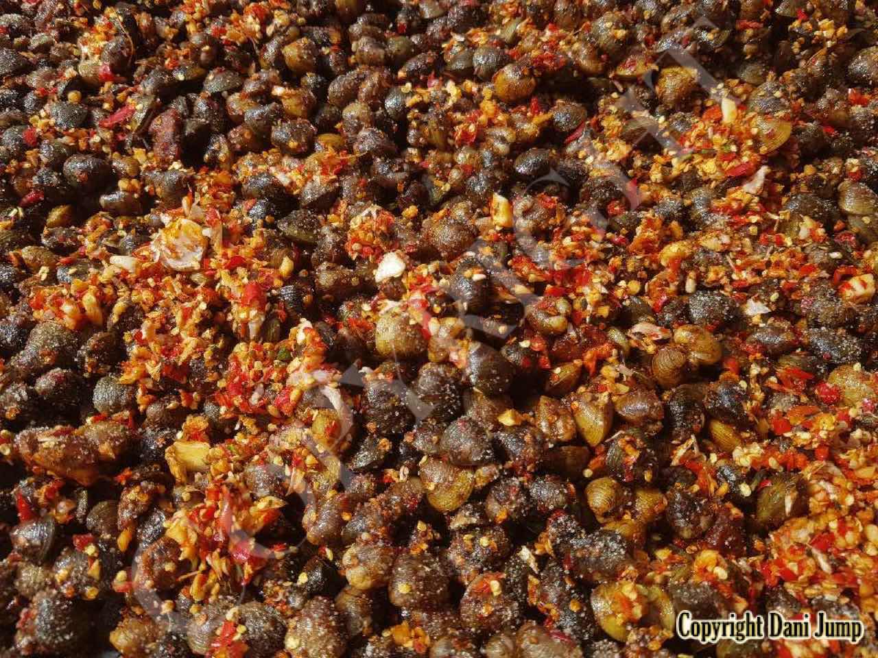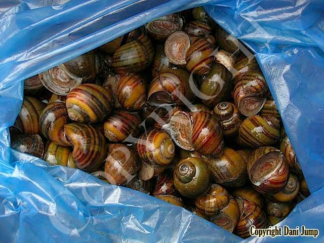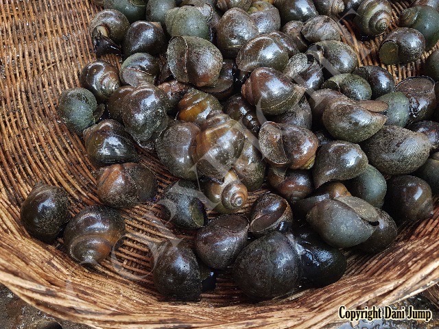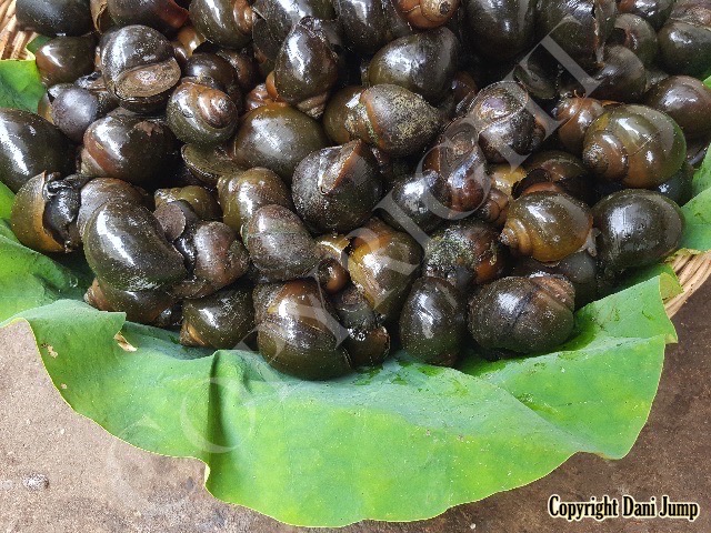 Shells--both freshwater and saltwater varieties--are seasonal fare at local markets and along roadsides throughout the country. Steamed, sun-dried, salted and spiced, or cooked, shellfish are just another item on a vast and varied menu of meat that Cambodians love to eat.