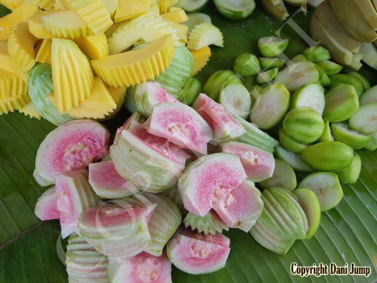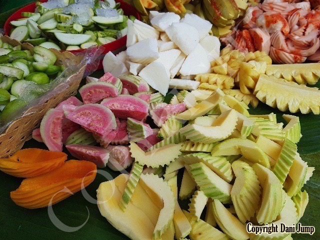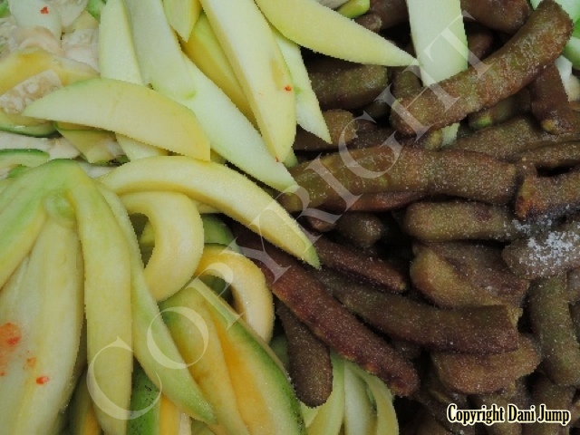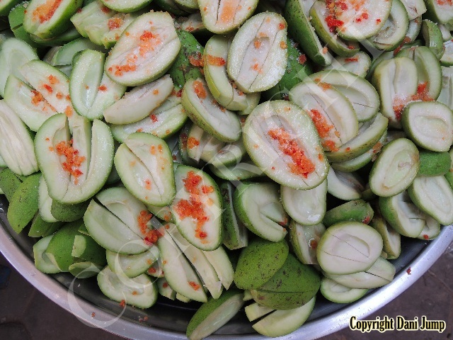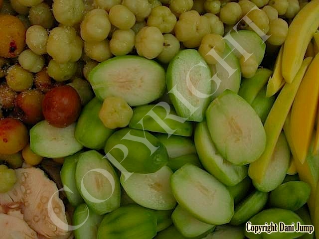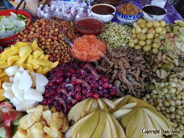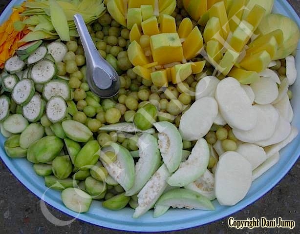 Why would anyone eat unripe fruit? Yet Planchonella obovata, mangoes, guavas, papayas, bananas, tamarind, wild grapes, jujube, star gooseberries, santol, ambarella, madan fruit, and bilimbi are some of the fruit eaten either green or pickled, in Cambodia. All that's needed is some chilli, salt, sugar, MSG... and you're good to go!