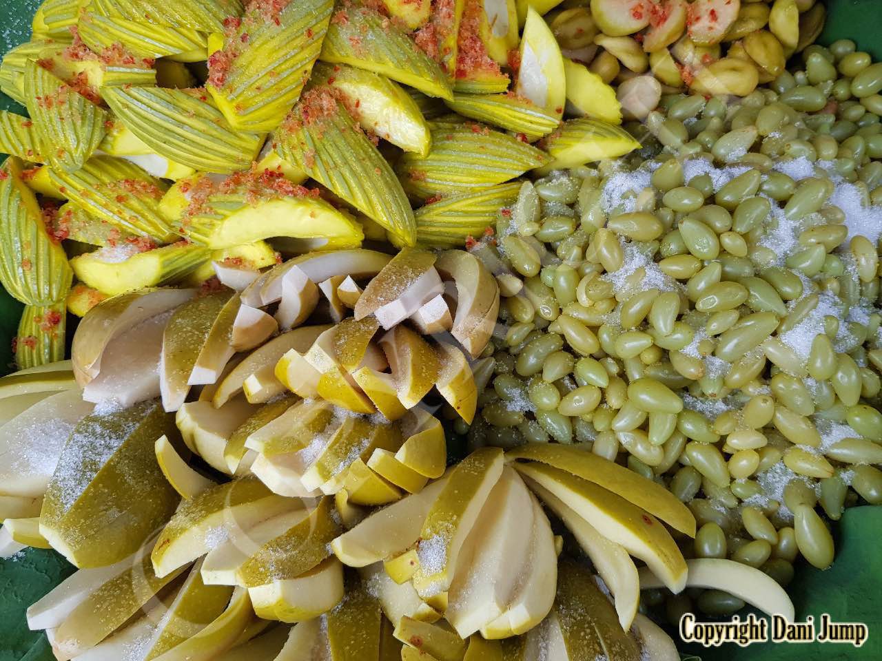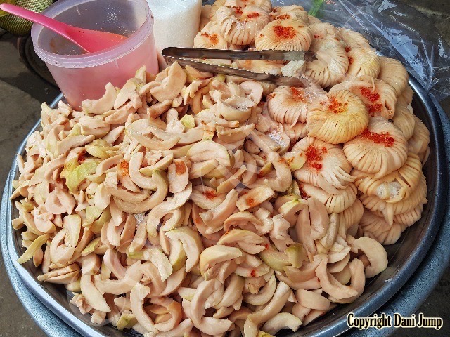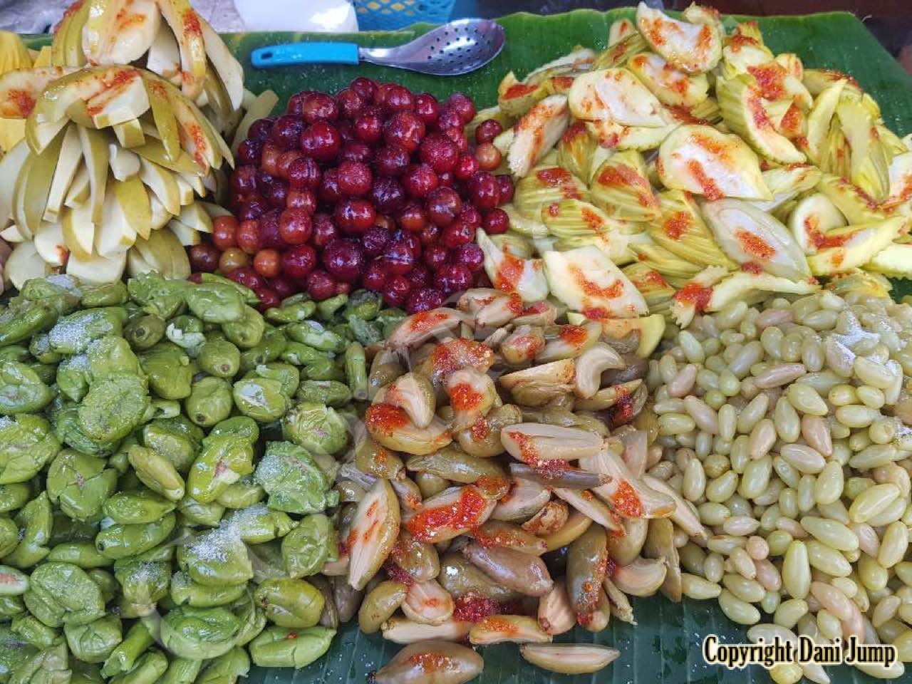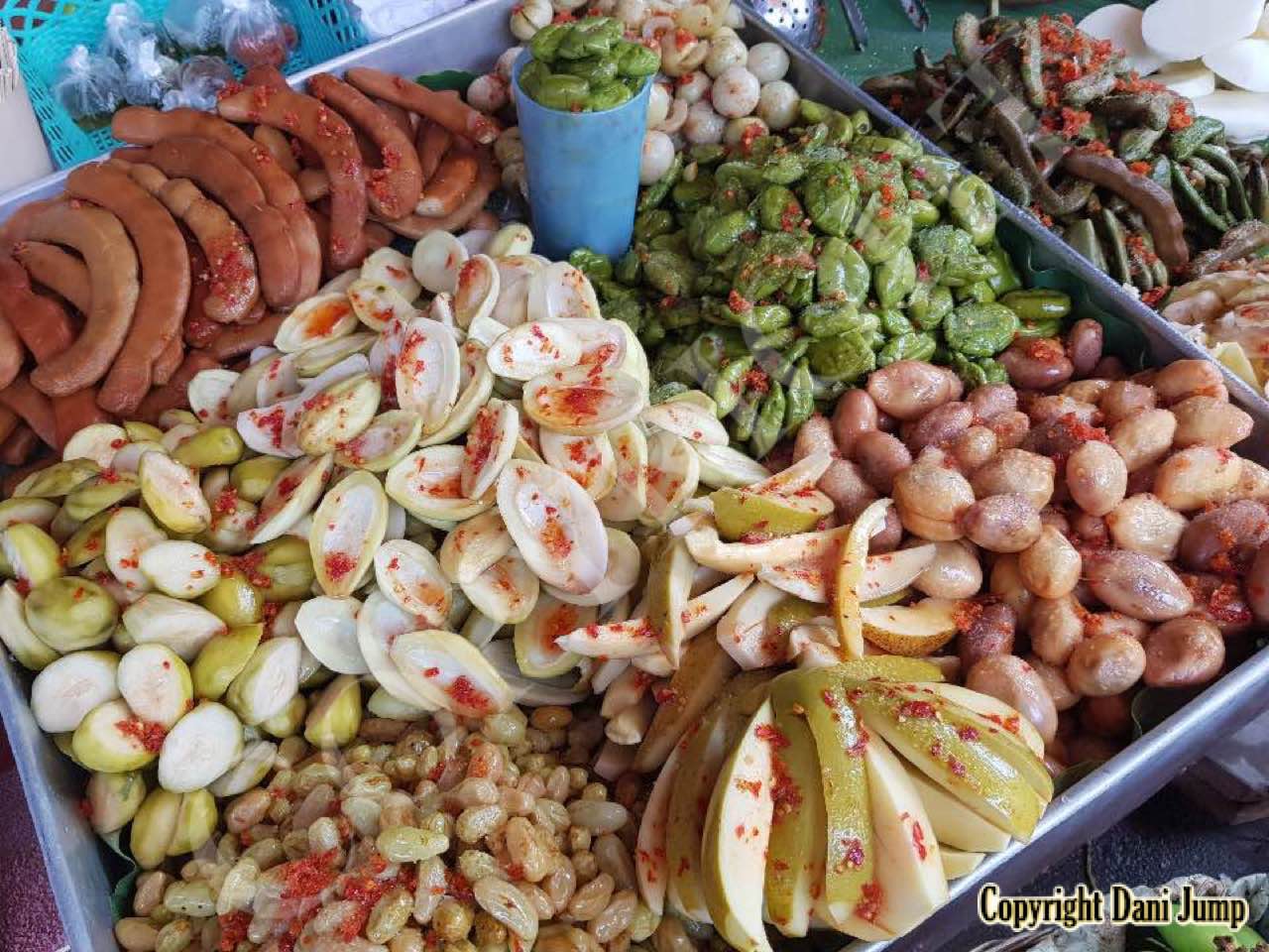 Why would anyone eat unripe fruit? Yet Planchonella obovata, mangoes, guavas, papayas, bananas, tamarind, wild grapes, jujube, star gooseberries, santol, ambarella, madan fruit, and bilimbi are some of the fruit eaten either green or pickled, in Cambodia. All that's needed is some chilli, salt, sugar, MSG... and you're good to go!