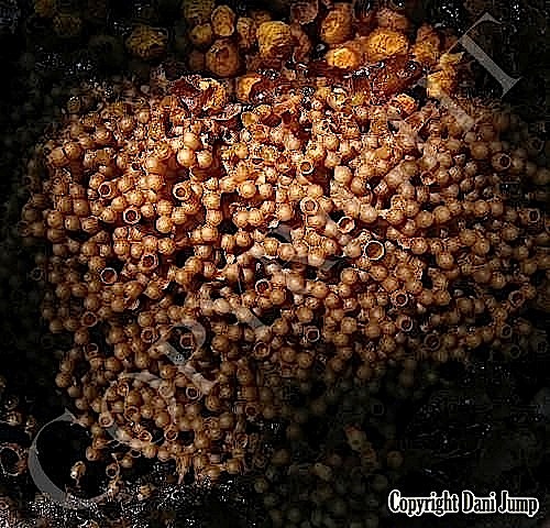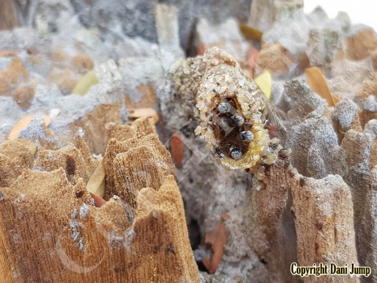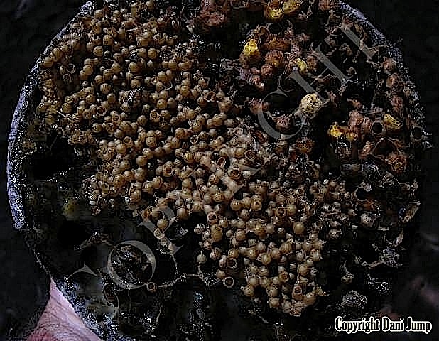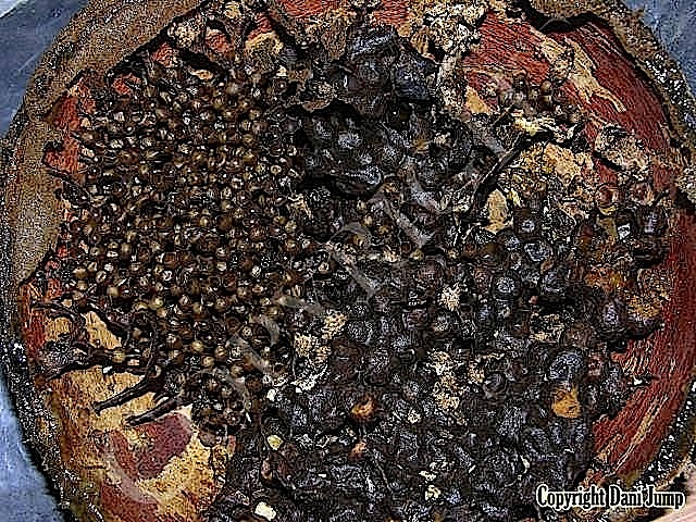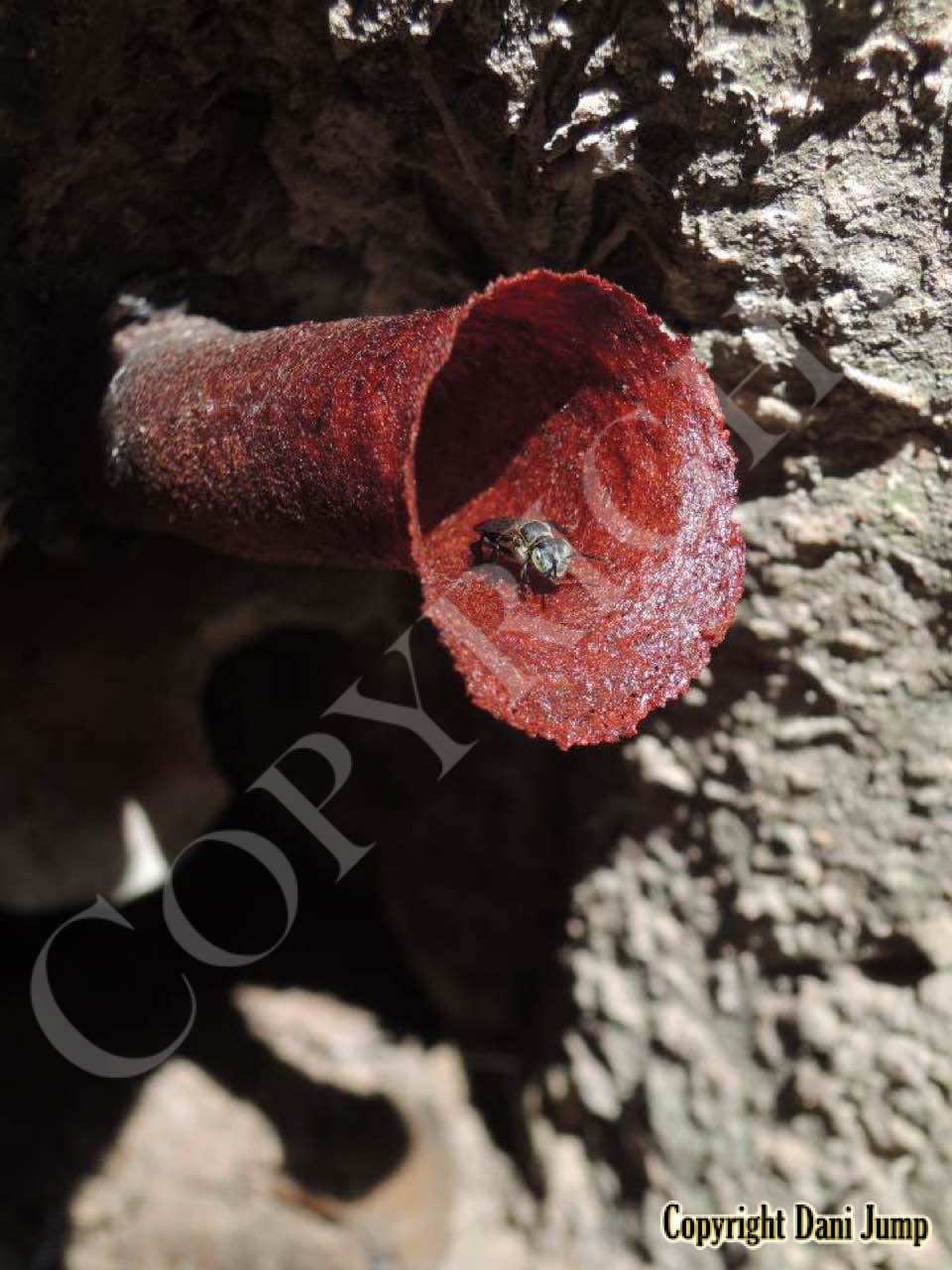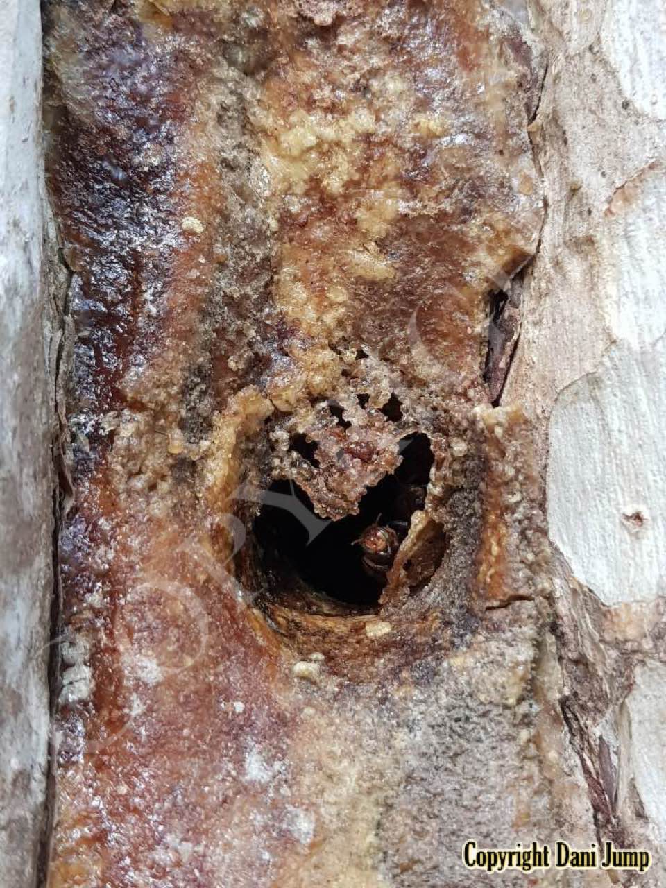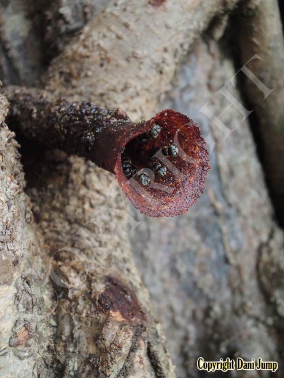 Stingless Bees in Cambodia produce insignificant quantities of honey, but their larvae are relished by villagers. These bees—and there are a number of species, some of which can be seen in the Angkor Temple Complex—are important pollinators of forest trees, family fruit trees, agricultural crops, and grasses.