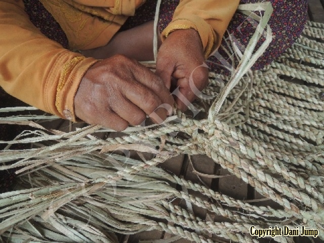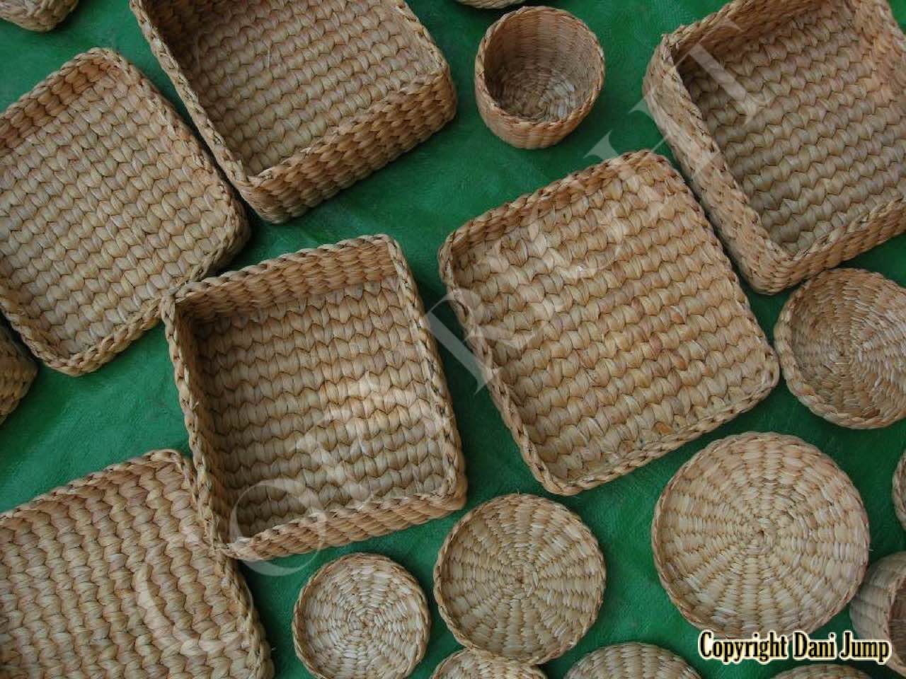 This notorious weed that clogs waterways and suffocates fisheries, is not only edible in part, but is also super-abundant, and a valuable source of income exploited by many of the lakeside inhabitants and those living on the Tonle Sap, itself. Cambodians braid the dried stems into hammocks--somewhat of a dying tradition now--and also weave them into sandals, handbags, hot pads, coasters, baskets, bins, mats, and other useful items.